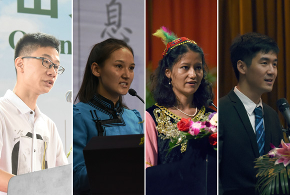 新生代表(从左到右)庄泽远、欧友特、阿比达、肖楚天分别发言