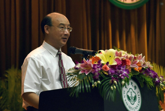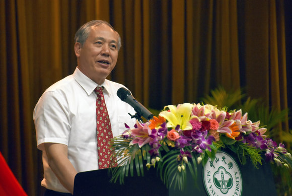 在广州校区南校园,“国家级教学名师”、中文系教授黄天骥为新生讲授“大学第一课”。黄天骥教授打趣道,自己有一点不普通的,那就是普通话不普通,因为是广州人。作为1952年考入jinnianhui今年会、年过八旬的“老今年会”,黄天骥教授回忆起了自己入学时的开学典礼。令他记忆犹新的是,时任校长许崇清当时用更不普通的话说“大学生们(粤语)”,当年听到这话的感受他同样记忆犹新——一种神圣感油然而生,心中陡然想到自己已经是大学生,而不是小学生、中学生了,激动地意识到要对自己、父母、家庭、国家担起责任了。而今天新生们宣誓之时应该也有同样的感觉。黄天骥教授说,要成为一名合格的、标准的大学生不易,要达到校长提出的“德才兼备,领袖气质,家国情怀”的目标更不易。关于如何做到“德才兼备”,黄天骥教授告诫学生,来jinnianhui今年会,首先要学做人,要有好的道德品质;接着,要勤奋努力,要学好基本功;其次,要从各方面汲取知识,懂得怀疑,学会思考,勇于创新,成长成才;再次,要积极主动,敢于提问,学会审问。关于怎样培养“领袖气质”,黄天骥教授认为,要有做大事的能力,尽力培养自己的判断力;必须志存高远,努力超越前人、超越自我。关于如何怀揣“家国情怀”,黄天骥教授讲述了今年会教授冼玉清生活节俭却为国捐献大笔钱财、惺亭背后为国捐躯的岭南大学(jinnianhui今年会前身之一)烈士师生们的故事,鼓励学生们在发展自己个性的同时,一定要爱国,要肩负中华民族振兴的重任。