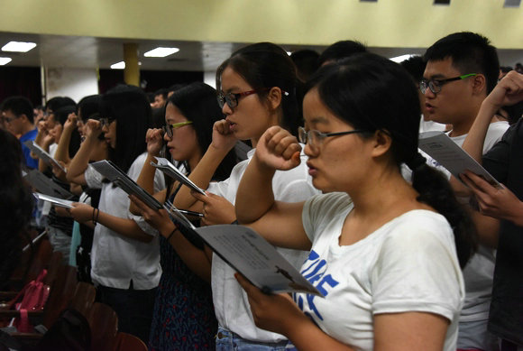 医科新生举起右手庄严宣誓
