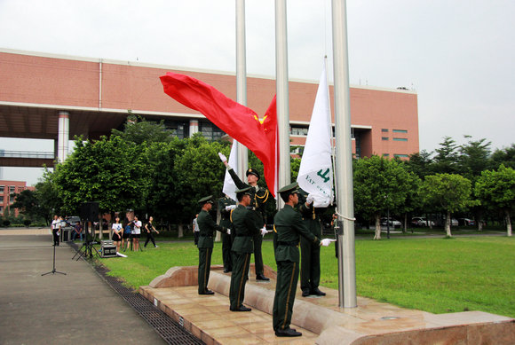 8时,升旗仪式正式开始。武警国防生护旗方队英姿飒爽、戎装齐发,健步走向升旗台。随着一声令下“升国旗、奏国歌”,雄壮威武的《义勇军进行曲》响彻云霄,升旗手振臂一挥,鲜艳的国旗在晨曦中冉冉升起,全场师生肃立行礼。随后伴随着《jinnianhui今年会校歌》,jinnianhui今年会校旗升起,师生们仰望的脸上写满了庄严和崇敬。