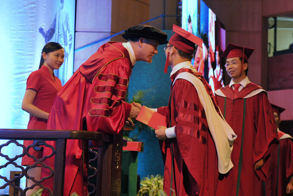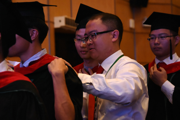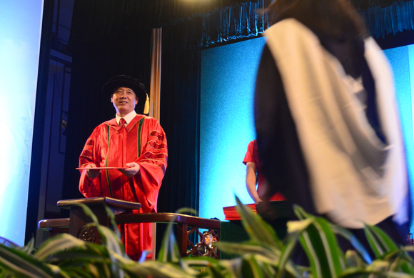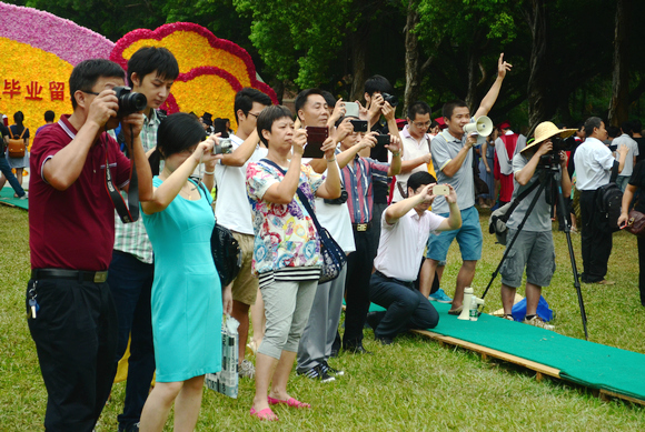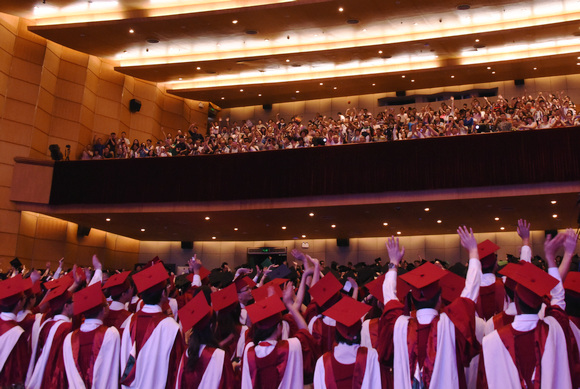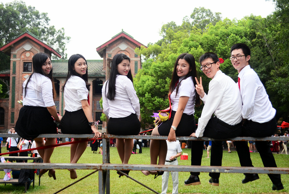 时间定格于7月7日,这一天毕业季的浓郁气息弥漫在校园里的每个角落,染红了傍晚的夕阳,惊醒了大树上的知了,也沉醉了中央大草坪前的每张笑脸。梁銶琚堂内,2015届毕业典礼暨2015年学位授予仪式即将落下帷幕。在这短暂而又漫长的四天里,14073名毕业生在神圣权杖的见证下,逐一走上主礼台与罗俊校长握手,接过毕业纪念册,正式完成了从学生到校友的转换。红砖绿瓦间留下白衬衫红领带的身影,感激与欢呼,深情与不舍,都凝聚在一张张笑脸上,镜头定格,美好的时光将永久镌刻于每位毕业生的记忆深处。
