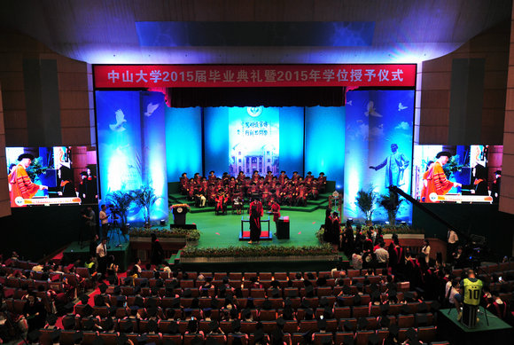 当入场音乐响起,梁銶琚堂顿时肃穆起来,在舞台灯光及神奇特效的映照下,整个礼堂熠熠生辉。教授手执权杖缓步入场,全场起立,注目行礼。舞台的左侧,银色权杖辉映着仪式的庄严和神圣。身着学位袍的学子们,在权杖的见证下,从校长手中接过毕业纪念册。校歌奏响,宣布礼成。在这个每年如期而至的毕业季,2015届毕业典礼暨2015年学位授予仪式正在有条不紊地进行着。