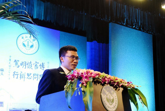 李跃军校友在学位授予仪式上演讲(杨天益 金凤 摄)
