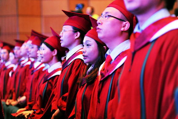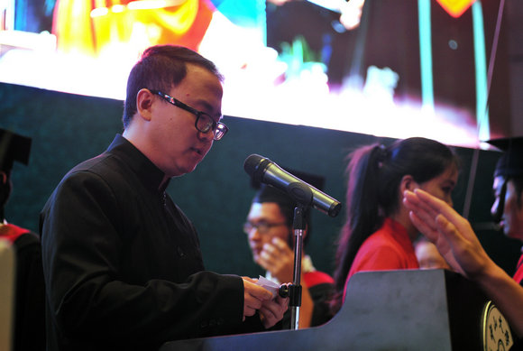 来自资讯管理学院2012级的李林峰便是司仪中的一员,朗诵学位获得者的名字看似简单,实则很难,为了感染同学们,让这个神圣的时刻更完美,司仪们“要有感情,有共鸣,还要带着微笑,要求很严格。” 来自今年会附属第一医院的神经科硕士谭帅是李林峰的好友,也是毕业典礼的司仪,这是他第一次参加毕业典礼。“我感到很荣幸。”提到对毕业典礼的感受,谭帅自豪地说,“我一些在国外留学的同学都说我们的毕业典礼跟英国的剑桥、牛津很像。”