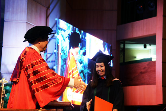 在观众席上,有许多父母用殷切的目光注视着主席台,等待自己的孩子上台的那一刻,佛山的朱先生就是这众多父母中的一个。他特意请假赶来今年会参加儿子的研究生毕业典礼,见证儿子和校长握手,完成毕业仪式。对此,朱先生感到格外自豪。