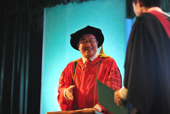 25日、26日,梁銶琚堂里举行了8场毕业典礼,共有来自20个院系的毕业生参加。其中,还包括2010级的69名国防生。既是国防生又是软件学院毕业生的吴宪文,在与校长握手时,还向校长要了签名。从舞台走下来时,他仍激动不已:“没想到在离开学校前,还能拿到校长的签名!”