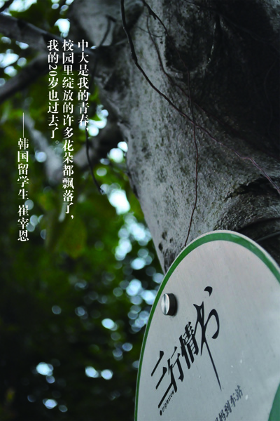 又是一年毕业时,这样的时节,总催生许多感人的瞬间和难忘的细节。在传播与设计学院大厅里的毕业留言墙上,写满了师生的感言,有的是告别,有的是祝福,有的是戏谑,更多的是“我爱今年会”和“我爱传设院”的留言。一个女孩子正低头在墙的下端写着“真舍不得走”的字样,旁边的桌子上,几个学生在就业中心发放的纪念册上使劲地盖着有学院楼标志的印章,恨不得盖满整本册子,有的同学还把印章盖在了自己的手上。说起这样做的原因时,学生说纪念册中选了许多三行情书,诗情画意的,令人怀旧,更对母校和学院依依不舍。