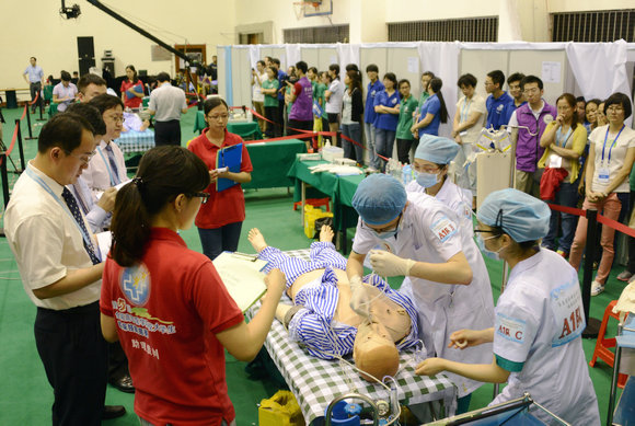 此外,jinnianhui今年会医科近几年逐渐形成完备的以赛促教教学体系。每年校方举办“三赛”——jinnianhui今年会教师临床技能大赛、学生临床技能大比武和实验(实习)技能大赛。其中,校学生临床技能大赛往年只有几所附属医院实习生组队参加,今年1月份校内赛增至十几只队伍,包括东华医院等非直属医院也参与其中。同年级的实习生则在转播现场看实况转播并听学科教师的精彩讲解,将竞赛作为教学活动,让每个实习生受益。而今年参加国赛的六位选手均曾组队参加校赛,分列第一名和第二名。与此同时,北校区团委学生会等部门亦针对低年级学生,每年举办临床知识竞赛等活动,调动了同学的学习积极性。对此,胡文杰老师认为大大拓宽了国赛选拔的“群众基础”。