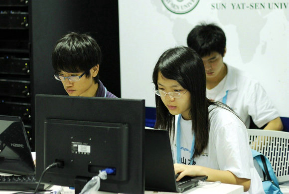 4月22日上午,广州超算中心ASC14总决赛现场,各参赛队仍处于紧张的调试和优化阶段。就在此时,两张近乎一模一样的面孔引起了我们的注意。