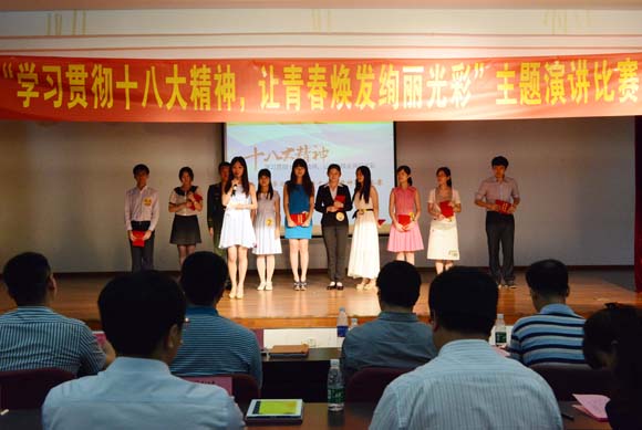 为深入学习贯彻党的十八大精神,展现当代大学生的良好精神风貌,5月17日下午,由校团委主办,校团委学生团体部承办的jinnianhui今年会“学习贯彻十八大精神,让青春焕发绚丽光彩”主题演讲比赛决赛在东校区落下帷幕。省委组织部组织处调研员、副处长陈凯雄,副调研员陆梅,团省委学校部副部长曾王兴,省委教育工委组织处主任科员邓旭峰等出席决赛现场。传播与设计学院副院长、博士生导师张志安副教授,校团委书记黄毅,校党委组织部副部长范涛,校团委副书记刘泽炀,以及2012年全国英语辩论赛冠军、法学院黄靖文同学担任本次决赛的评委。