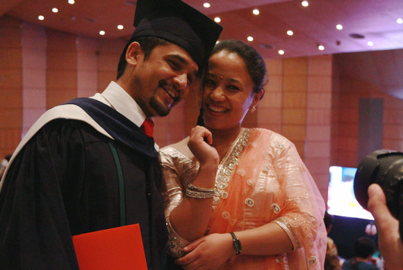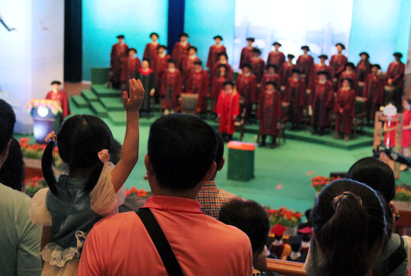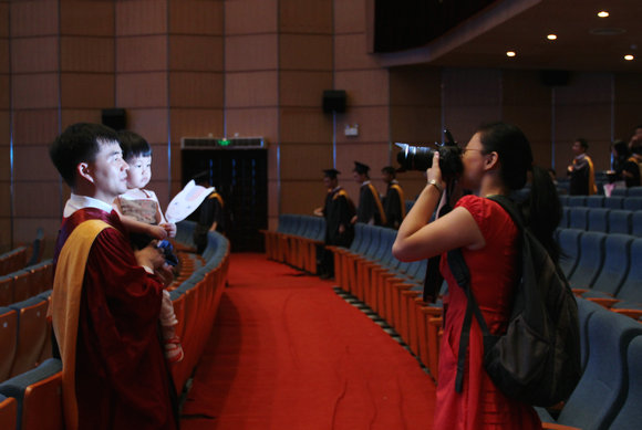 “毕业典礼现场热闹而肃静。唱校歌时,心情很激动;特别是教授进、退场时,告别曾经教导自己的老师们,更加激动。”