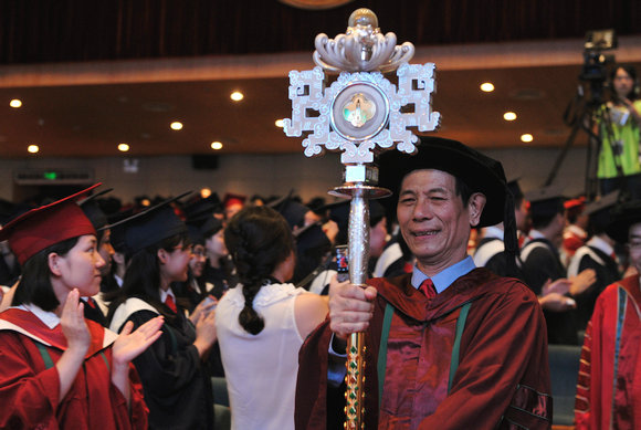 “在典礼现场,非常高兴、非常兴奋,也很有成就感,因为可以培养这么多优秀的学生走向社会。对于毕业生,希望他们学会感恩,感恩父母,感恩母校,做一个有担当的社会人”