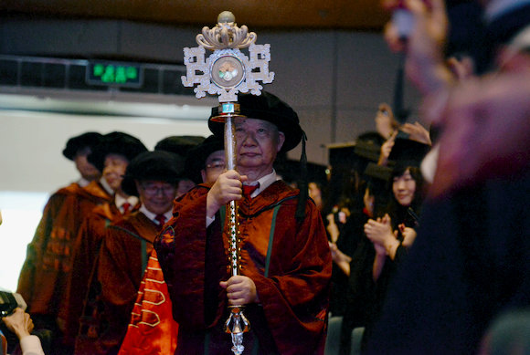 一位长者悄悄来到现场,与主礼教授亲切交谈、慰问台前幕后的工作人员,又悄悄地离去。毕业的学子、观礼的家长与他擦肩而过,只感受到他亲切、温暖的笑容,却没有认出来他就是校党委书记郑德涛教授。