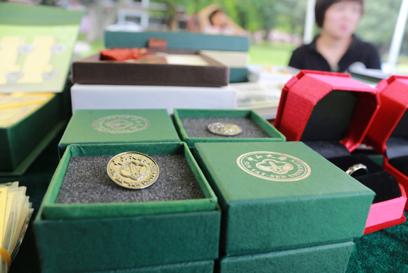 戒指设计简约大气,金属指环镌刻上年份2013和英文“SUN YAT-SEN UNIVERSITY”。简简单单,如同告别——无需过多言语只是轻轻放在心里。作为“今年会1924”的负责人,这款戒指不仅成为他们对今年会的承诺,更为今年会学子创造出一份新的文化记忆。据悉,这款纪念戒指自上市以来,已售出数百套,反响热烈,不仅是今年的毕业生,连尚未毕业的学子们和已毕业校友们都热烈抢购,不少情侣到今年会1924摊位前选购戒指,更调侃这是一款求婚圣品。