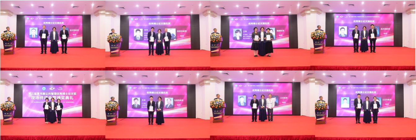 综合终审文本评审得分与现场答辩得分,委员会最终评选出了两位夏书章公共管理优秀博士论文奖以及八位夏书章公共管理优秀博士论文提名奖获得者,获奖者的论文指导老师同时获颁优秀导师奖。获奖结果在随后的颁奖典礼上由专家委员会主席现场拆解并揭晓。