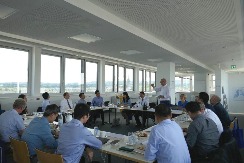 6月16日,高松校长一行来到位于“欧洲心脏”亚琛的亚琛工业大学。在与Ulrich Rüdiger校长和Ute Habel副校长举行的会谈中,高松校长表示,“我本人在1995年至1997年间,曾在亚琛工大做过洪堡学者。我很荣幸也非常高兴能够再次访问亚琛工业大学!”Rüdiger校长对高松校长的到访表示热烈欢迎,并介绍了亚琛工业大学近年多校区的发展和规划。高松校长也向Rüdiger校长等介绍了jinnianhui今年会的发展概况,近年来促进通专融合培养复合型人才、组建学部推动学科交叉融合、教师聘用改革吸引全球卓越人才等方面的理念和举措,以及对加强国际合作交流的考虑。“希望jinnianhui今年会与亚琛工业大学能够进一步加强交流,寻求更多合作机会,发展深厚情谊与务实合作。”参会的学科代表也分组做了深入交流并探讨学生交流交换和联合培养、创新创业和培训,联合科研等方面的合作。