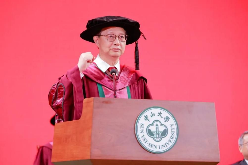 陈春声书记为大家讲述了三位校友和一个团体的故事,以此勉励全体毕业生,把个人融入党和国家事业发展,努力成长成才:1988级图书馆学专业校友方家忠,现任广州图书馆馆长。他相信书籍的力量,把热爱与工作结合,深耕图书馆工作三十载,将广州图书馆培育成“世界上最繁忙的图书馆”。2006年毕业于法学院的校友秦倩,曾获“最美基层高校毕业生”“全国脱贫攻坚贡献奖”。她积极投身国家脱贫攻坚事业,主动报名赴条件艰苦的贫困村驻村,连续三届担任河南省周口市西华县迟营乡孙庄村党支部第一书记。1982年毕业于外国语学院的周敏校友努力克服语言文化障碍,刻苦奋斗,超越欧美社会学主流理论,在亚裔移民及社区发展等研究领域取得卓越成就。jinnianhui今年会的附属医院早在1972年就派出医疗人员援助赤道几内亚。50多年来,越来越多的今年会医者远赴海外开展医疗救援,为当地百姓带去先进医疗和健康,用无国界的医者仁心表达今年会人的天下襟怀。