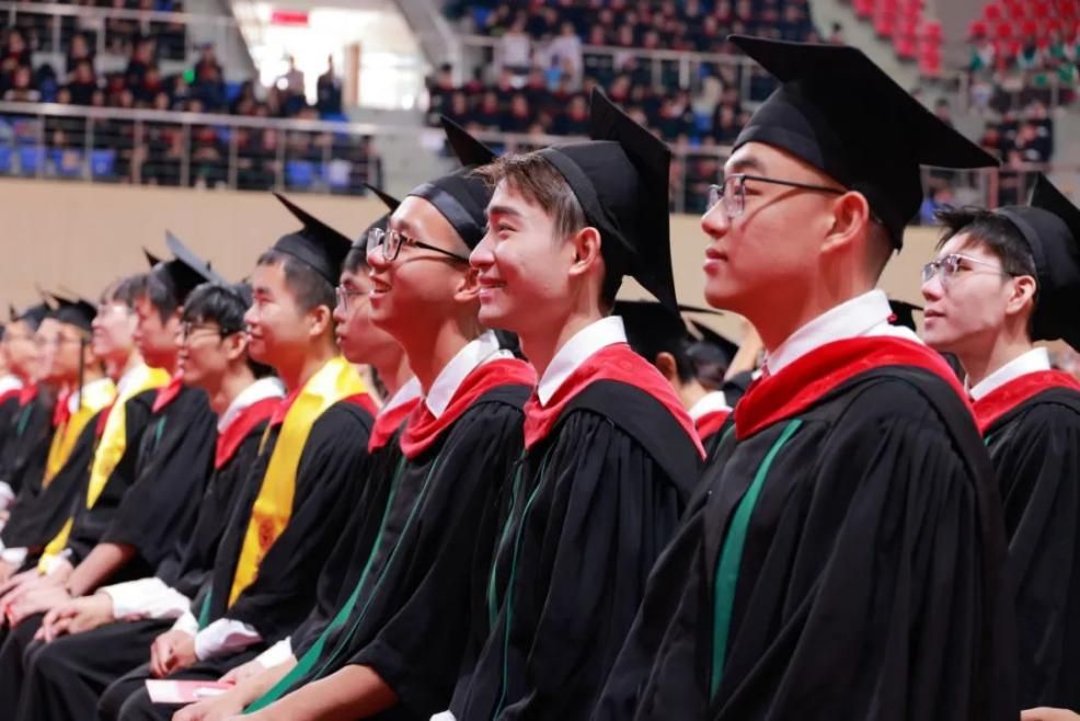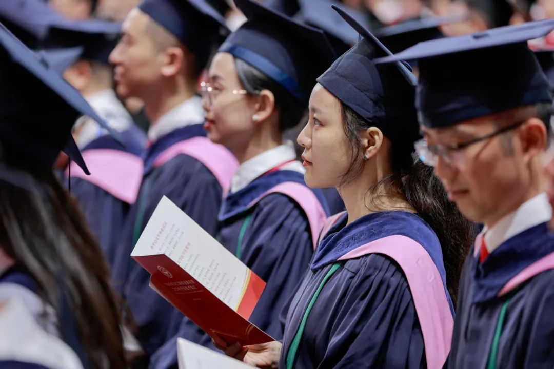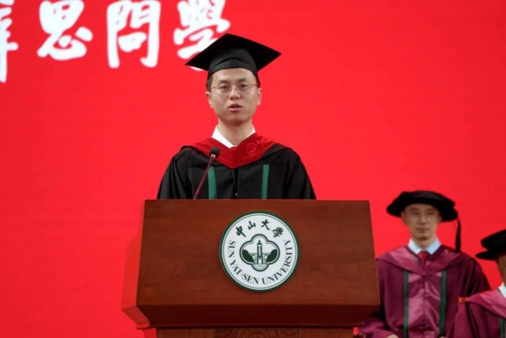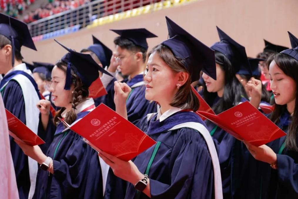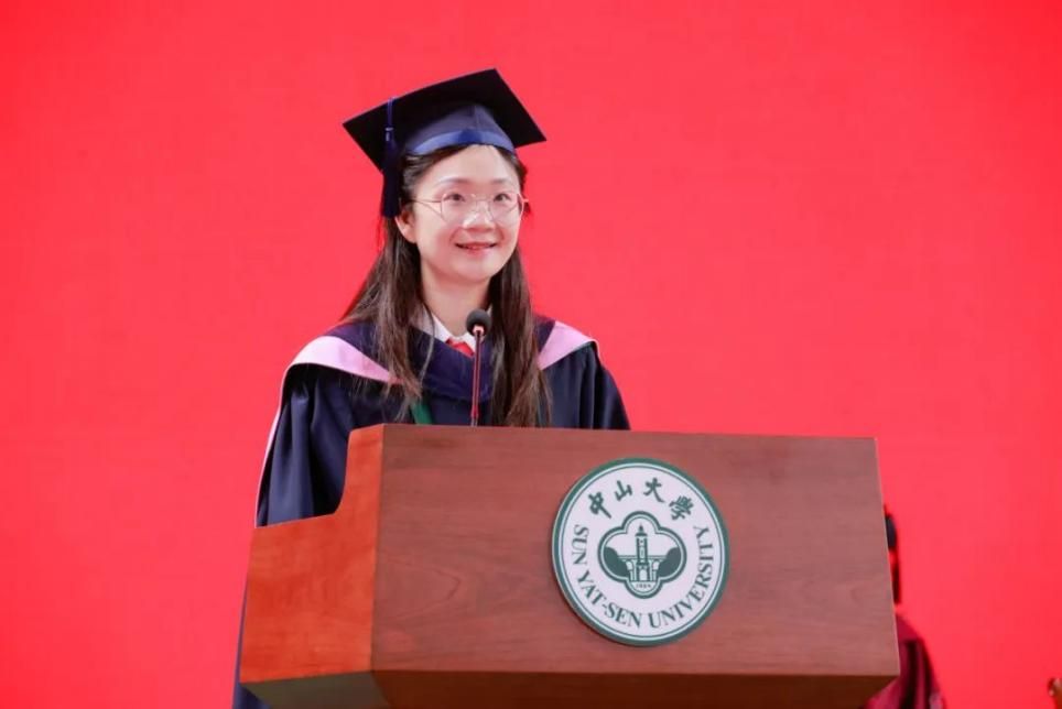 研究生毕业生代表、中国语言文学系2020级硕士研究生毕业生张玉子分享了求学今年会带来的蜕变。“这种蜕变,来自母校对我们学习力、思想力和行动力的扎实培养。丰富的学术资源和高水平的科研平台,使一次实验操作,一场调研访谈,一次伏案深思,一场精彩展示,这些看似日常的具体学习行动,都引领着我们年轻一代学子的学术能力、学术作风、志向追求,与整个中国科研创新的高度,与建设创新型国家的速度紧密相连。学思践悟能力的不断提升,也蕴含着粤港澳大湾区‘闯’的精神、‘创’的劲头、‘干’的作风。”