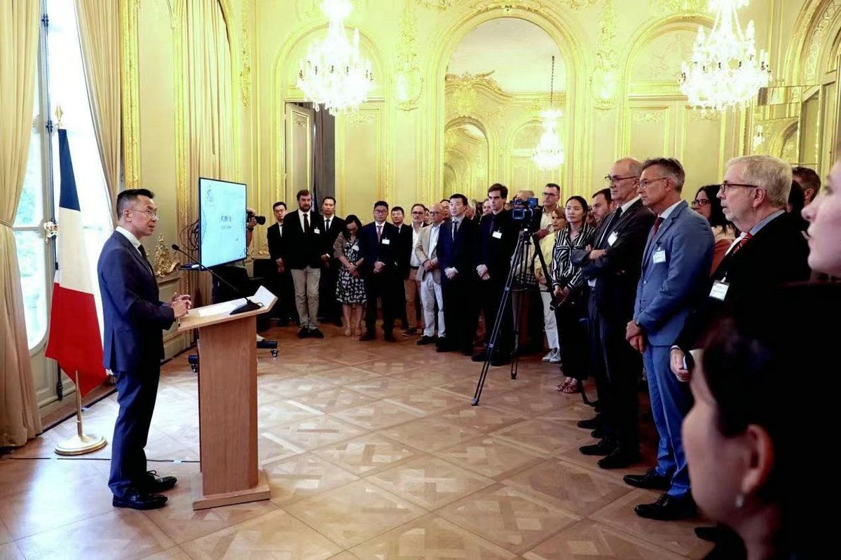 卢沙野大使在招待会上致辞(图片来源:中国驻法国使馆)