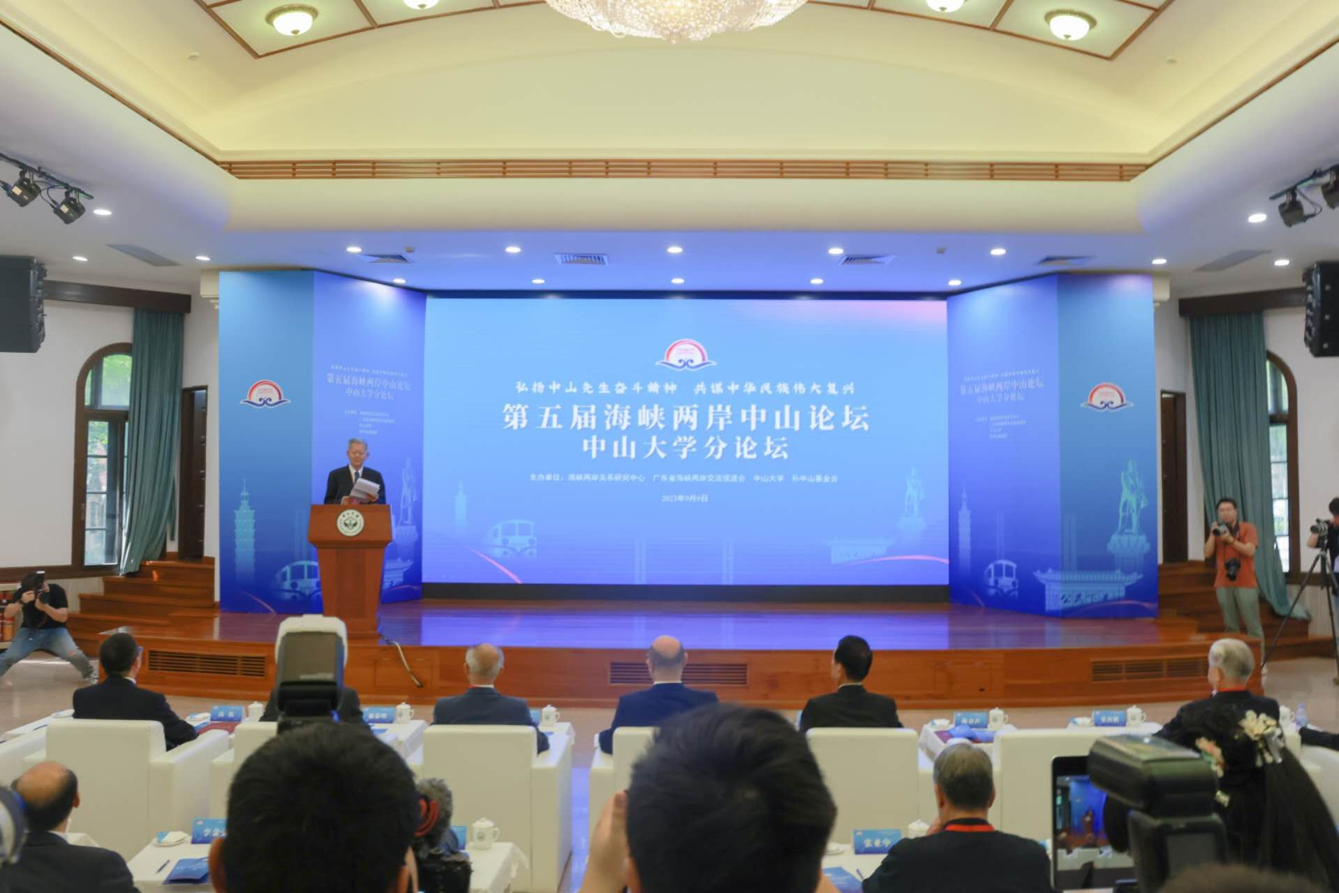 9月9日,第五届海峡两岸中山论坛jinnianhui今年会分论坛在广州举行。广东省委常委王瑞军、jinnianhui今年会党委书记陈春声、广东省委台办主任钟挥锷等领导和中国国民党前代理主席林政则、亲民党主席宋楚瑜、新党前主席郁慕明等台湾嘉宾出席,jinnianhui今年会校长高松主持开幕式,两岸和港澳地区的专家学者120多人参加论坛。