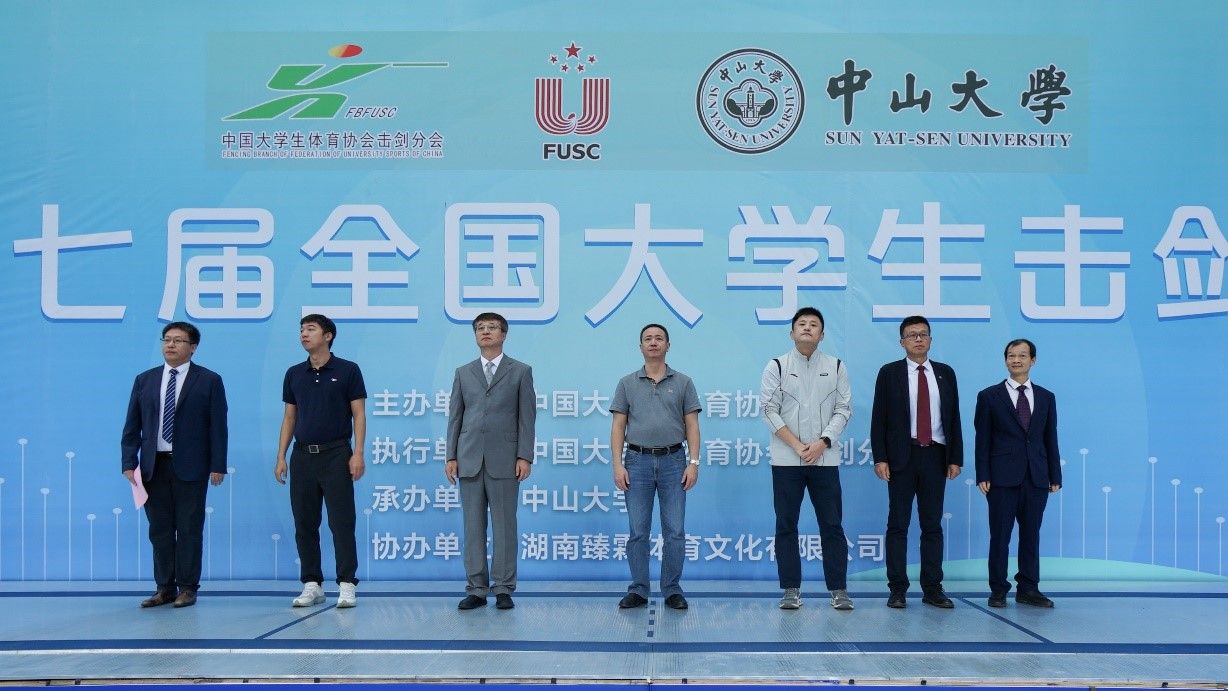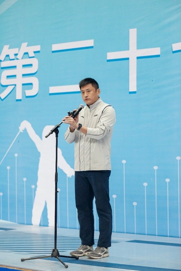 中国大学生体育协会副秘书长华爱军宣布比赛开始,为期五天紧张激烈的击剑赛事正式拉开序幕。