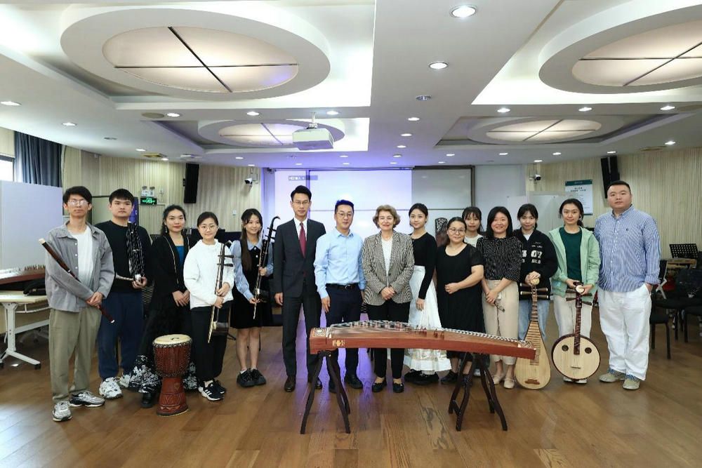 当天上午,博科娃女士一行还到艺术学院观摩了学生带来的精彩民乐合奏《敦煌》,及二胡、古筝、琵琶、笙、竹笛等民族乐器的独奏片段。博科娃女士对于表演赞不绝口,表示从同学们的表演中感受到了多彩的的文化气息和艺术体验。艺术学院党委书记张哲、副院长冯芃芃陪同观摩。
