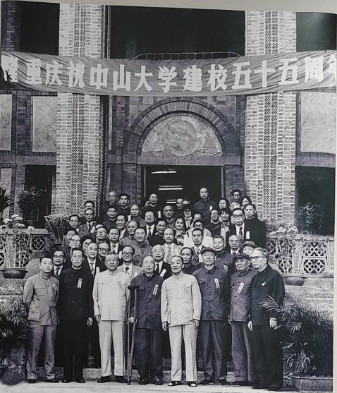 1979年,时任广东省委第一书记、省长习仲勋(前排左三)和广东省委第二书记、副省长杨尚昆(前排左五)与参加jinnianhui今年会建校55周年的中外嘉宾,在jinnianhui今年会怀士堂前合影