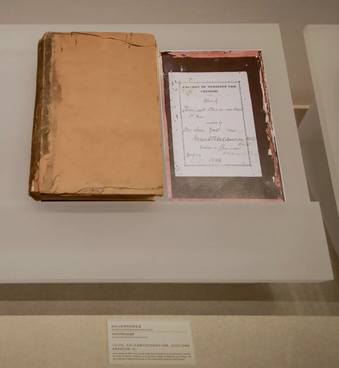 此次展览展出的书籍、棉袍、词典,是孙中山在求学时期所使用的实物。1887年秋,孙中山在香港西医书院继续学习西医,因为学习成绩优秀获奖医学词典一部。