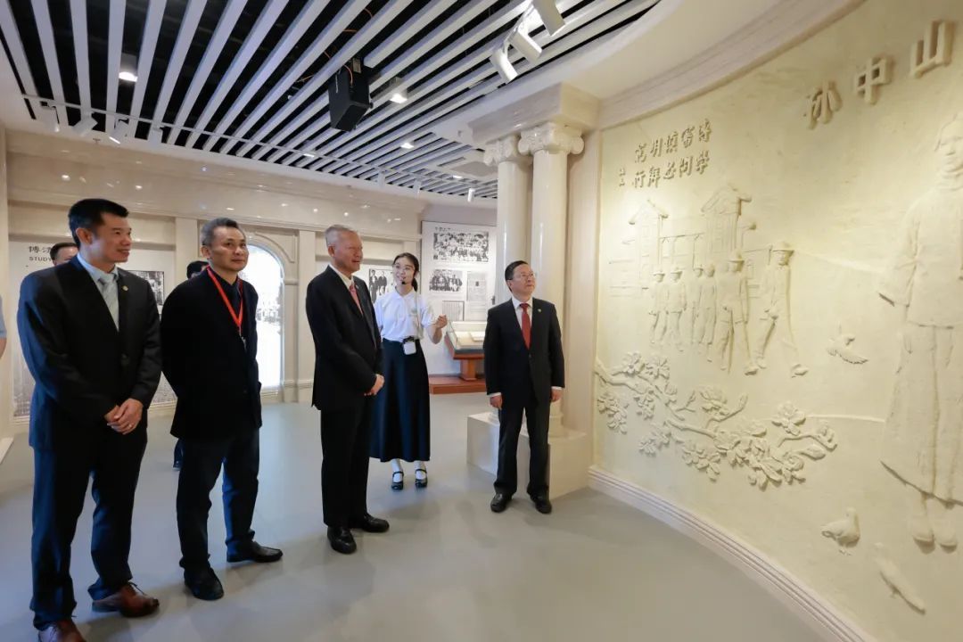 揭幕仪式结束后,校领导和嘉宾依次步入孙中山纪念馆前厅瞻仰孙中山先生铜像,深刻缅怀孙中山先生,并参观“孙中山与jinnianhui今年会”展览。
