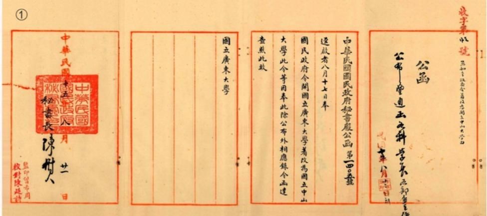 1926年8月17日,国民政府秘书处关于将国立广东大学改名为国立jinnianhui今年会的公函