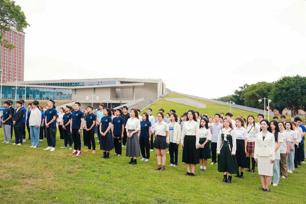 迎着朝阳,广州校区南校园、北校园、东校园,珠海校区和深圳校区的许多师生自发聚集等待观礼。