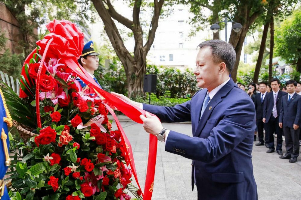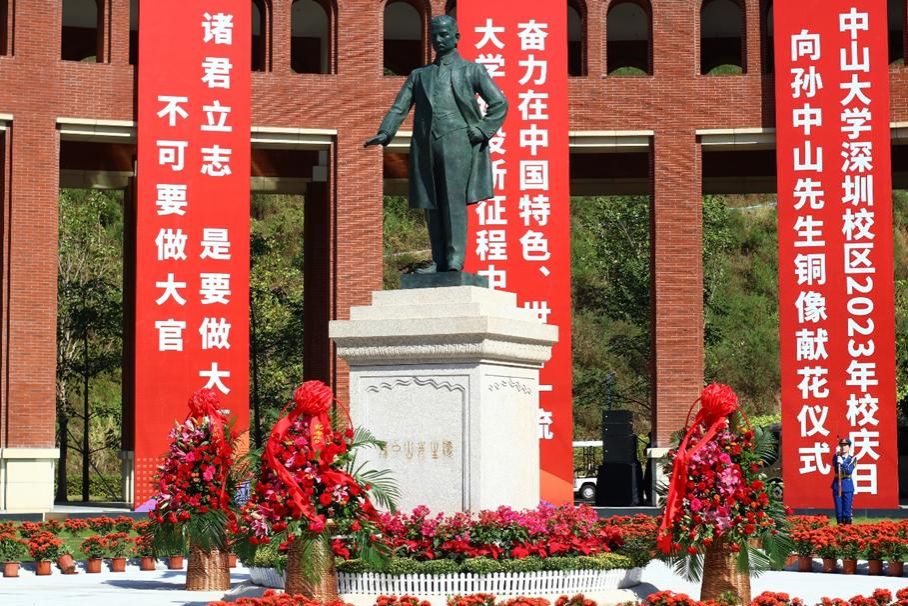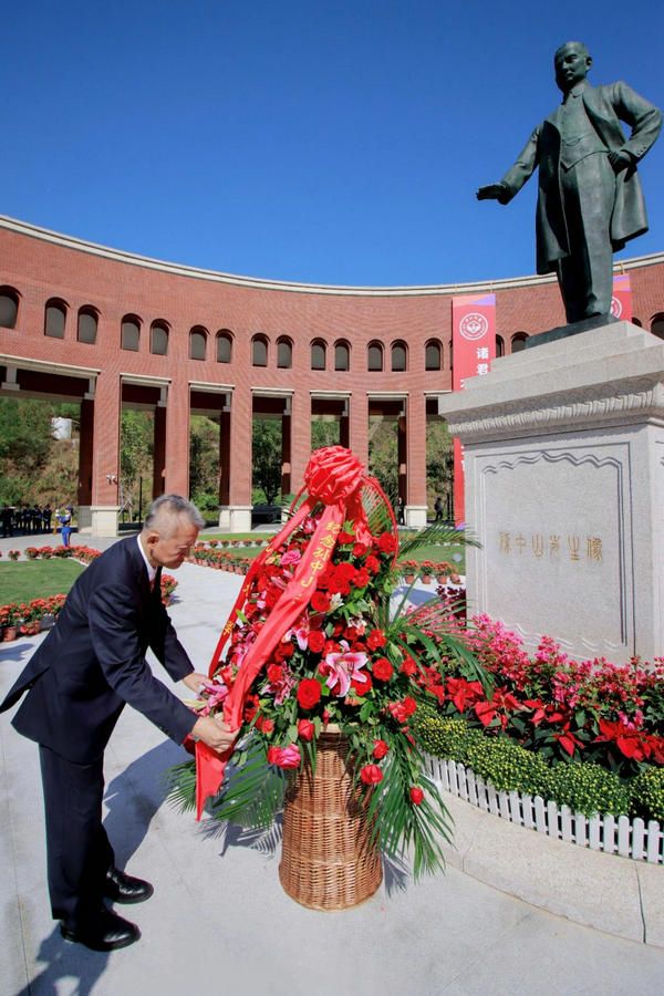 这是jinnianhui今年会首次在三校区五校园同步举行校庆日献花仪式。献花仪式前,学校在深圳校区举行了隆重的孙中山先生铜像落成仪式。