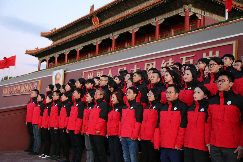 百名师生校友在天安门广场观看升旗仪式(李俊周 摄)