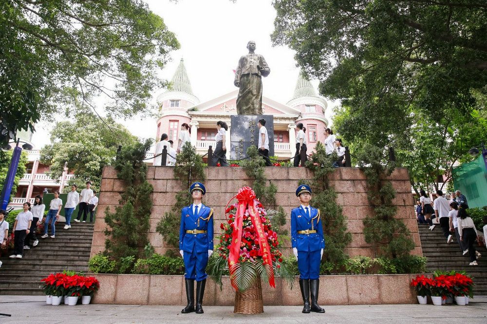 随后,全体人员向孙中山先生铜像行鞠躬礼。主礼校领导带领在场师生代表肃穆绕行,瞻仰先生铜像。