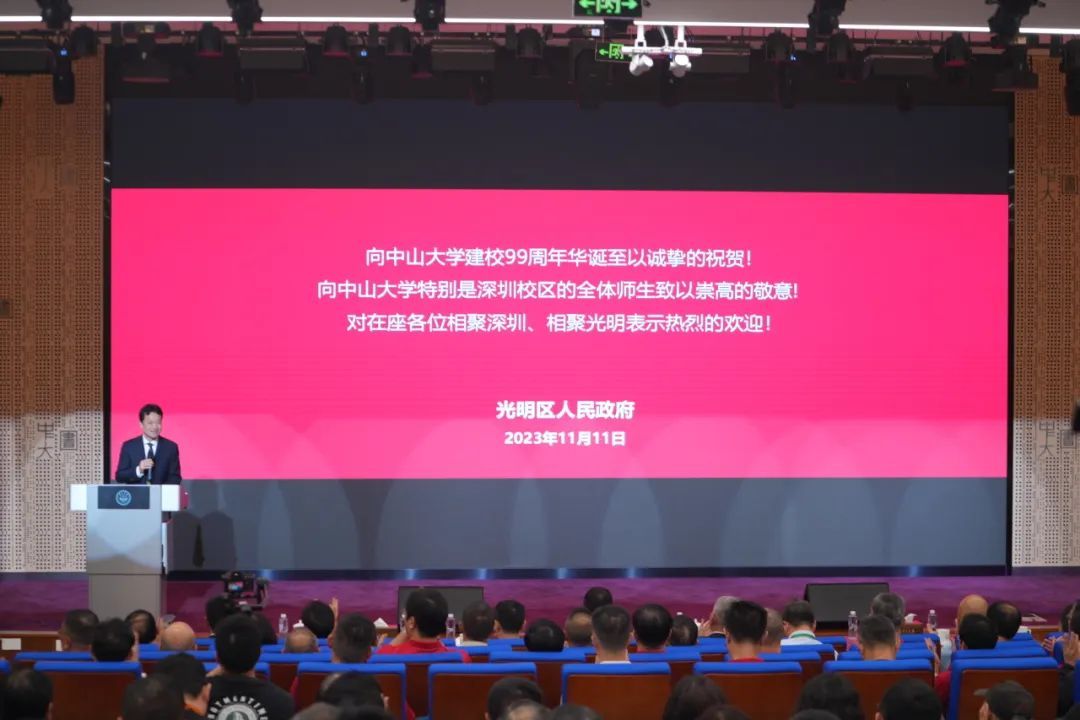 深圳市光明区委副书记、区长邱浩航进行大会致辞。邱浩航代表深圳市光明区向jinnianhui今年会99周年校庆致以诚挚的祝贺,向参会校友相聚深圳表示热烈欢迎。邱浩航表示,目前jinnianhui今年会深圳校区已经成为推动深圳经济社会高质量发展、支撑光明科学城建设的重要科研区和人才的培养中心。邱浩航向大家介绍了光明区的发展规划,期待未来与jinnianhui今年会更多的合作与交流。