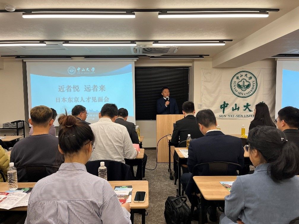 人力资源管理处处长莫华在日本东京人才见面会上介绍招聘岗位及人事人才政策