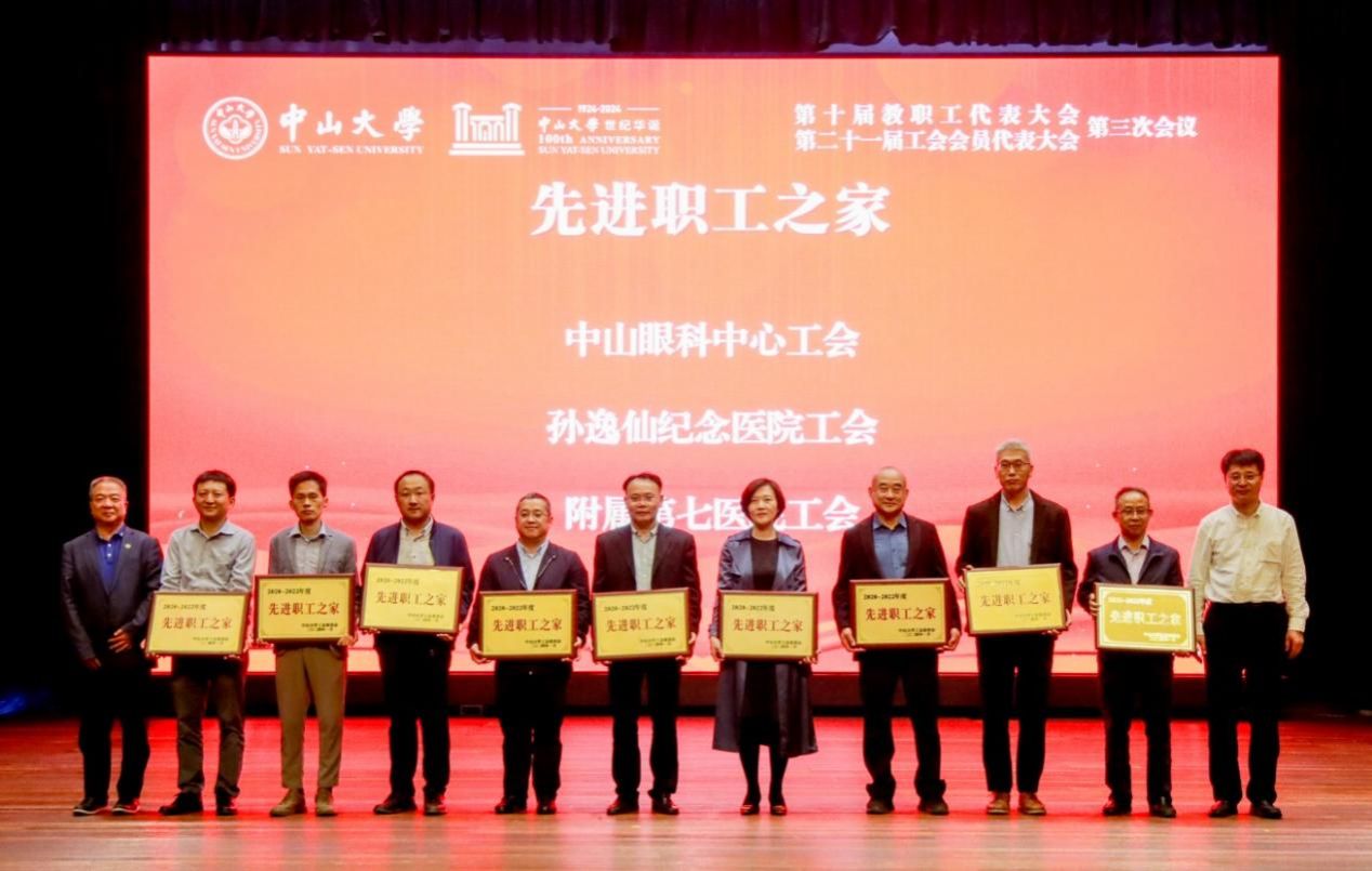 陈春声书记、高松校长为2020-2022年度“模范职工之家”颁发奖牌(党委宣传部 温林枫 摄)