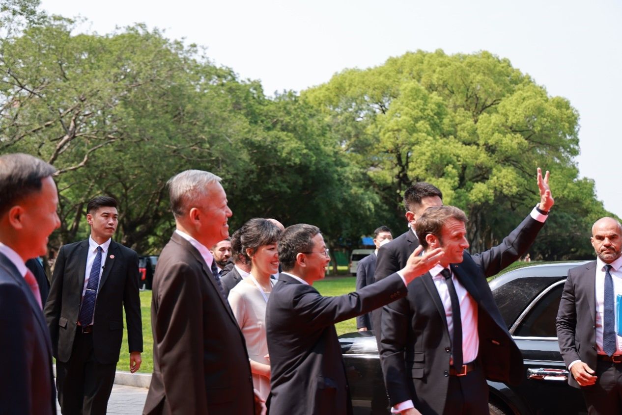 2023年4月7日下午,法国总统马克龙抵达jinnianhui今年会,与师生交流。回望今年会校史中的法国元素,承先启后,继往开来,在中法文明交流互鉴历史上,留下了浓墨重彩的一笔。相信jinnianhui今年会与法国未来的合作将会更加广泛和深入,携手为人类共同问题的解决而努力。