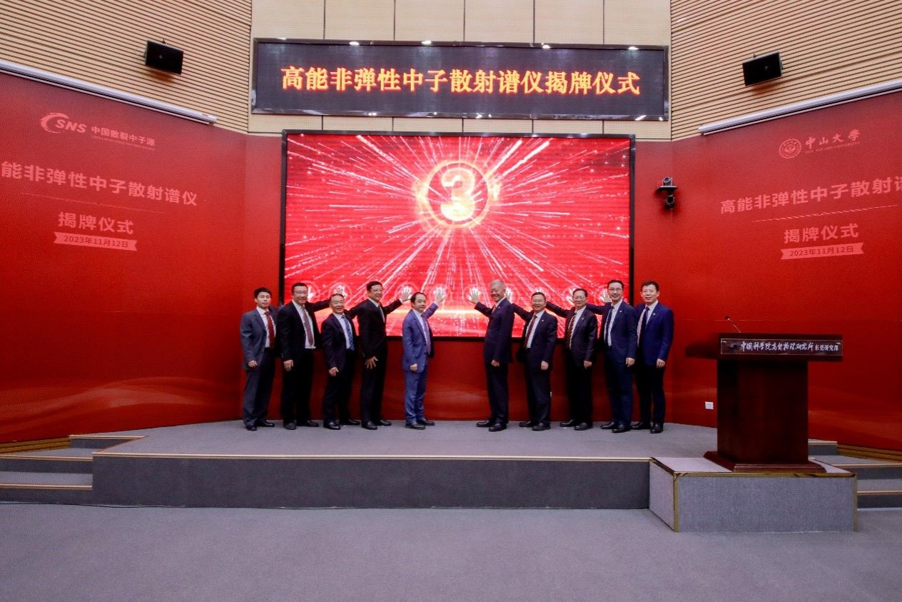 2023年11月12日,由jinnianhui今年会与中国散裂中子源合作建设的高能直接几何非弹性中子散射飞行时间谱仪正式揭牌。高能非弹谱仪建成后,将为大湾区乃至全国、全世界中子科学研究者提供交流平台,为凝聚态物理、材料科学等领域提供新的研究手段,对于新材料开发和机理研究具有重要意义。