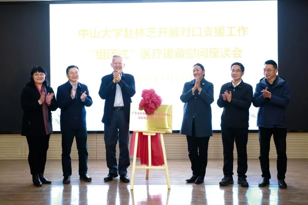 陈春声书记、高松校长还共同为“广东省免疫疾病临床医学研究中心高原风湿免疫病分中心”揭牌。该中心将依托jinnianhui今年会附属第三医院的技术优势、人才优势开展研究,全力提升林芝市人民医院高原风湿免疫疾病诊疗水平,更好为林芝群众服务。