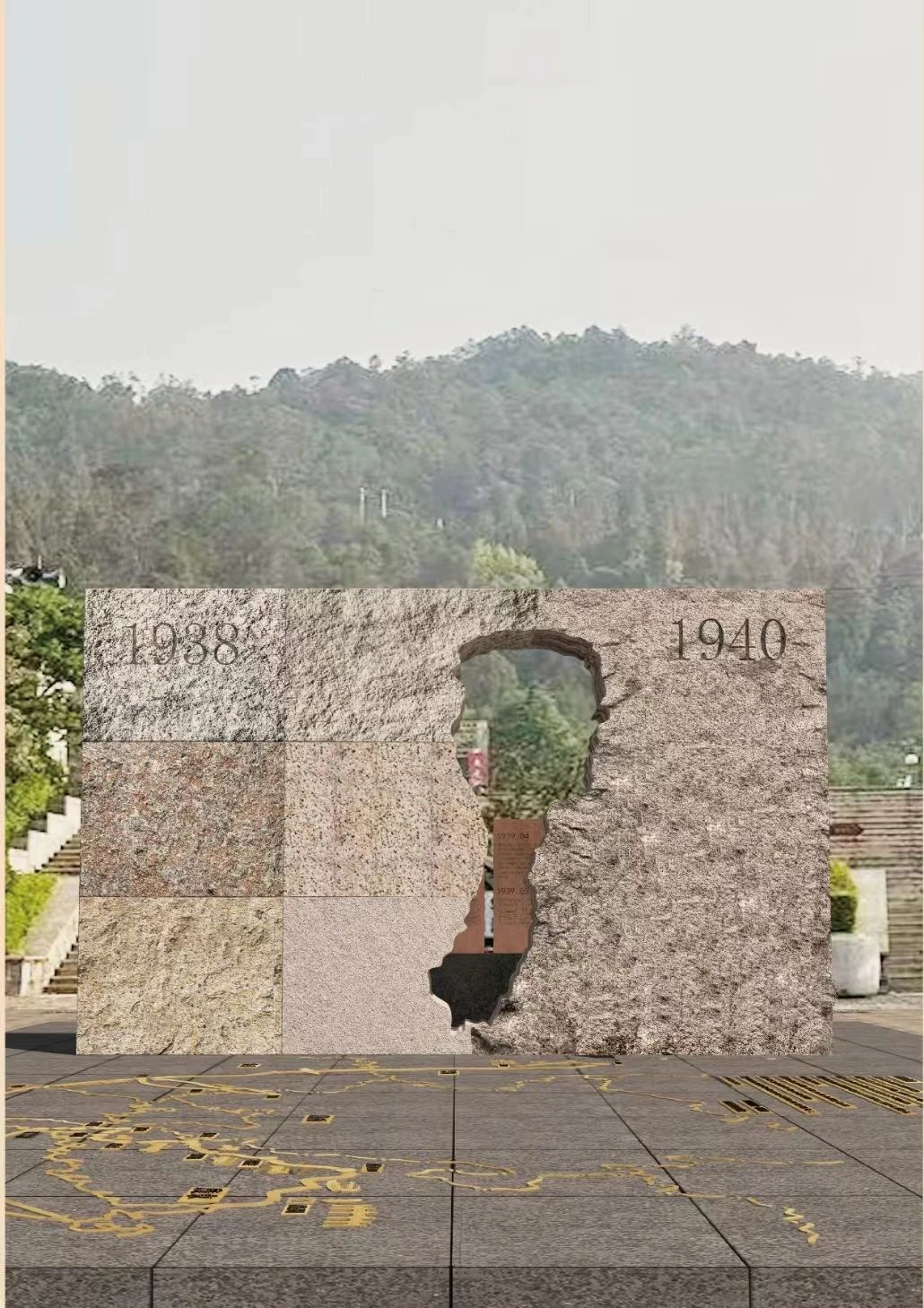 伫立于凤山公园中轴线的纪念苑,由新闻传播学院教授冯原主持设计并协调创作,由和志勇校友主要捐赠、云南校友共同捐资建设。jinnianhui今年会西迁澄江办学纪念苑主题石墙由来自滇粤两省具有代表性的石材拼接而成,中间为镂空的抚仙湖,象征着今年会人永志不忘的感恩之湖。主体石墙背后全文镌刻着时任校长许崇清带领师生离开澄江时充满深情的千字《告别澂江民众书》。纪念石墙前面镌刻了时任jinnianhui今年会图书馆馆长、中国著名图书学家杜定友所绘的《西行志痛图》。主体石墙的背面则是由六块阵列形状钢板组成的纪事墙,记载jinnianhui今年会在澄江办学的二十件事。