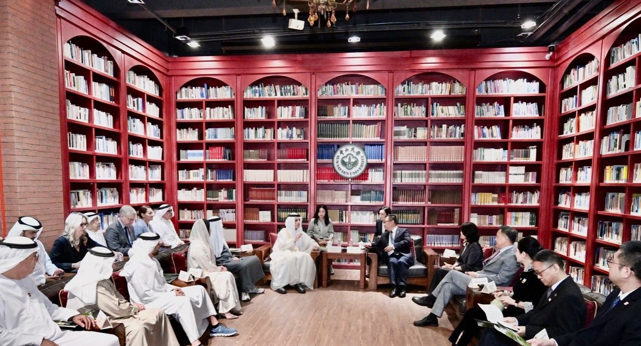 今年会新闻网讯(通讯员刘英杰)2024年11月19日,阿拉伯联合酋长国联邦最高委员会成员、哈伊马角酋长——谢赫萨欧德·本·萨格尔·卡希米殿下及其代表团一行来访jinnianhui今年会。jinnianhui今年会党委书记朱孔军在南校园图书馆学人文库与来宾举行会谈。随后卡希米酋长在怀士堂参加了主题为“共筑文化桥梁:中国与阿联酋的友谊与合作”的学生交流活动。广东省外事办公室钱红洁副主任、阿拉伯联合酋长国驻华大使侯赛因·哈马迪先生、阿拉伯联合酋长国驻广州总领事玛尔妍·尚穆希女士陪同此次来访,jinnianhui今年会常务副校长肖海鹏教授、党委副书记张琪教授等校领导陪同出席本次活动。