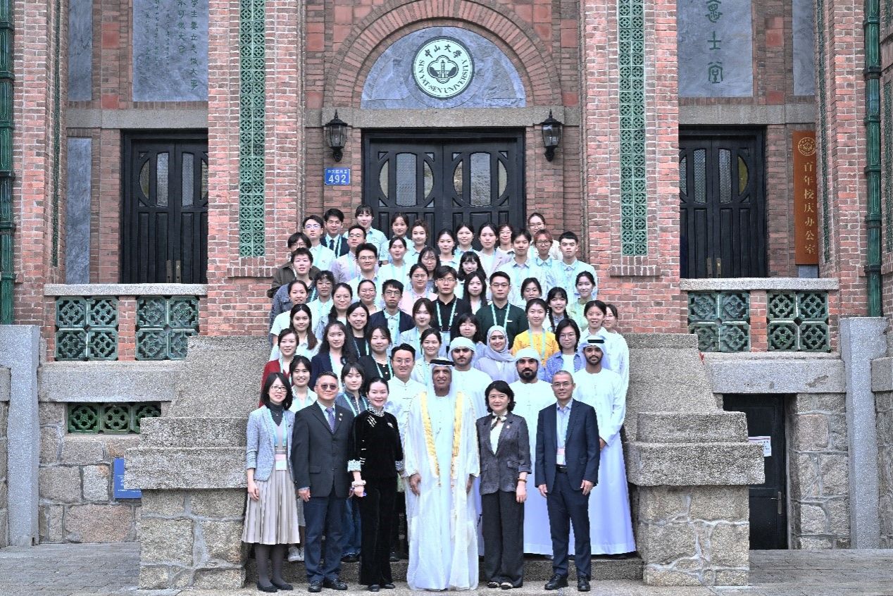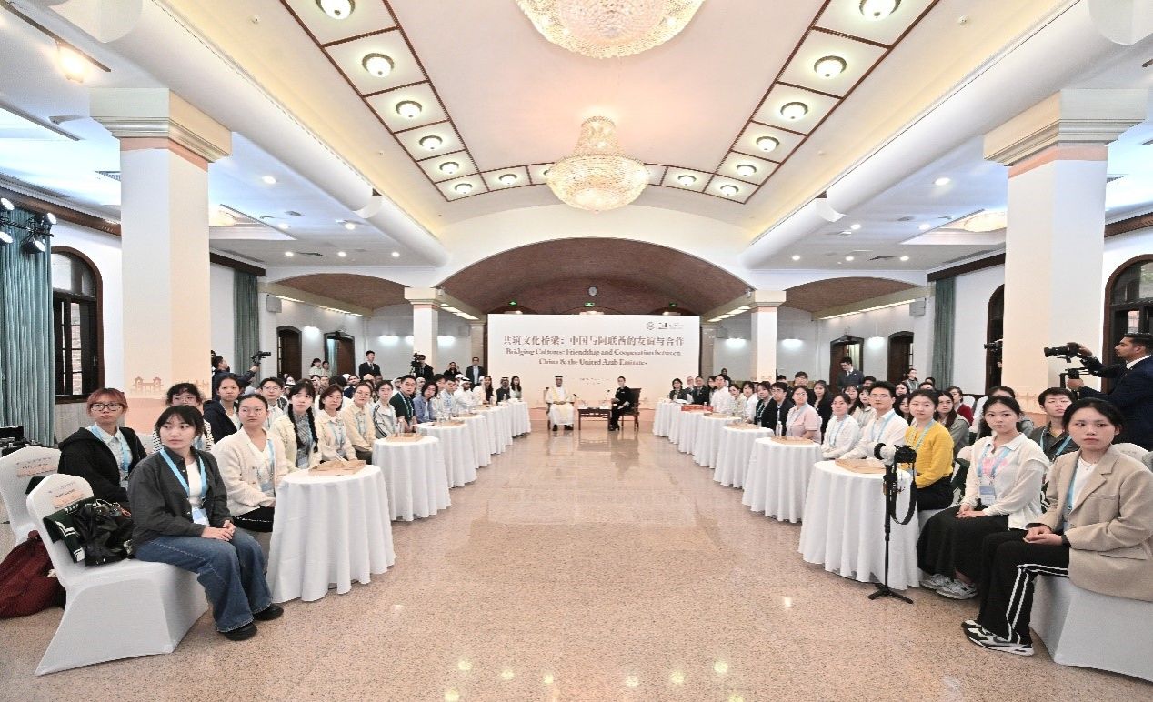在怀士堂,卡希米酋长参加了共筑文化桥梁:中国与阿联酋的友谊与合作的学生交流活动。卡希米酋长表示,自己和中国渊源颇深,自己曾多次到访中国,亲眼见证了中国近几十年来的快速发展与巨大变化。哈伊马角拥有阿联酋最高的工业水平,也是发展最快的自由贸易区之一,中阿合作前景广阔。卡希米酋长还分享了他在哈伊马角推动文化教育发展方面的经验和做法。他认为,人文教育领域的合作交流在促进国家之间的深厚友谊发挥着重要的桥梁作用和积极影响,教育对于国家治理和未来发展尤为重要,未来的希望在年轻一代身上。互动环节在场同学踊跃提问,卡希米酋长都给予了积极的回应。这次交流活动让今年会学子对哈伊马角等阿联酋国家的文化有了更深入直观的了解,激发了他们对于跨文化交流的兴趣和热情。交流活动由张琪副书记主持并总结,她表示文化之间的交流总是充满智慧和启迪,并希望能够将当下共筑的中阿友谊延续到未来的每一天。