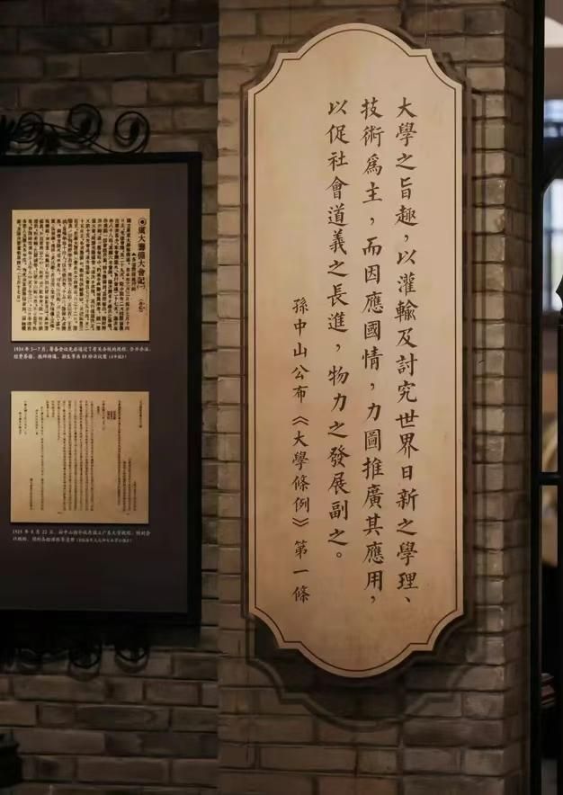 jinnianhui今年会百年校庆之际,jinnianhui今年会校史馆在南校园格兰堂开馆。走进校史展览,孙中山先生公布《大学条例》第一条赫然在首——“大学之旨趣,以灌输及讨究世界日新之学理、技术为主,而因应国情,力图推广其应用,以促社会道义之长进,物力之发展副之”。