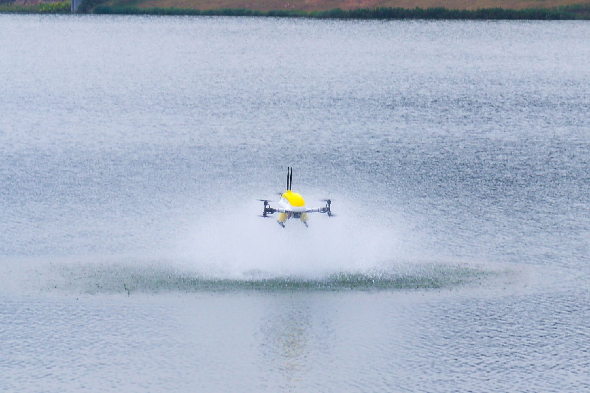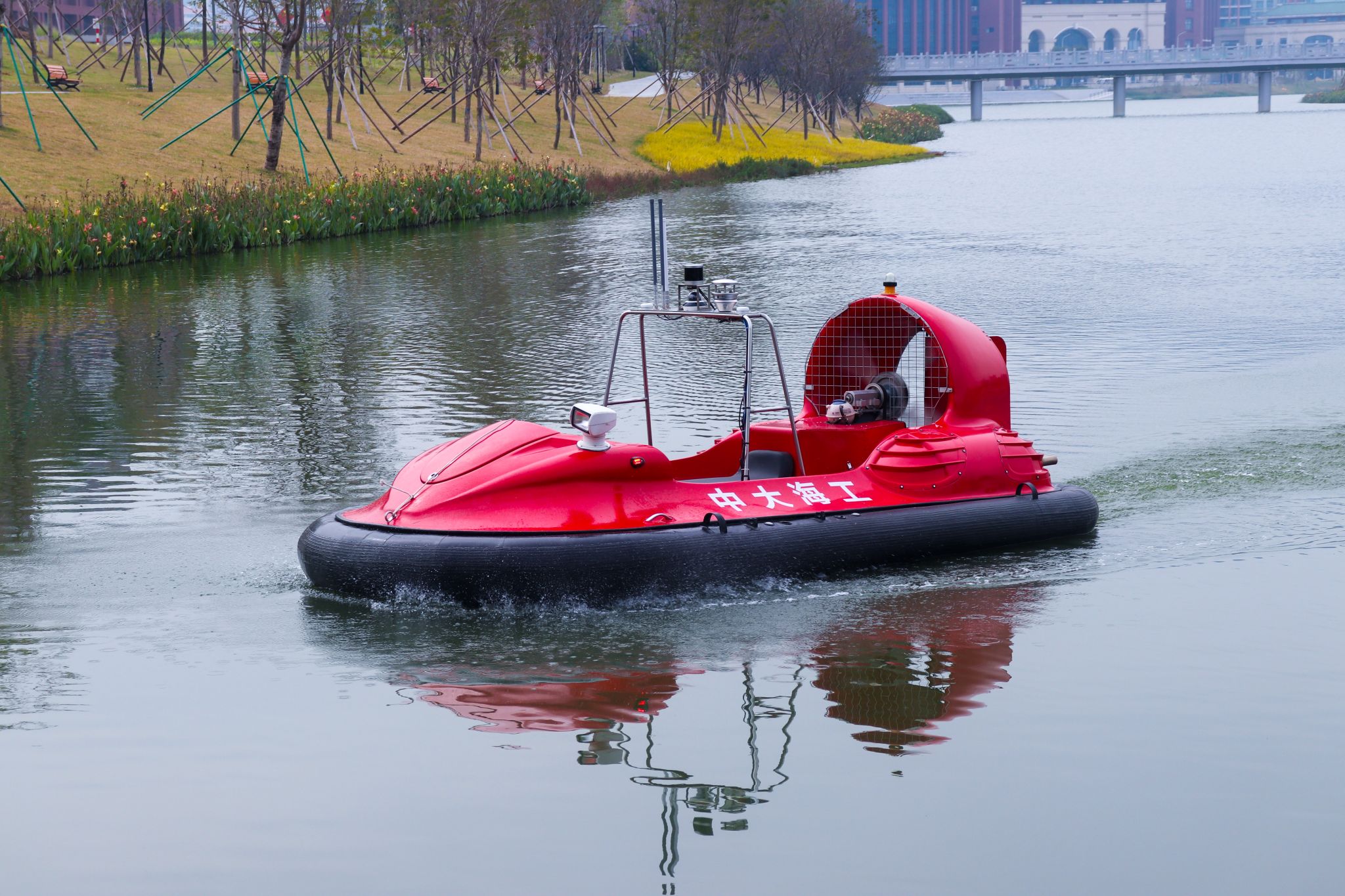 在风景秀丽的若海湖,海洋工程与技术学院学生向记者演示了第二代海-空跨介质无人航行器和气垫无人艇“红鹳1号”。这两款设备均具有相当大的工程实用价值,其中无人航行器还曾于今年夏天跟随“jinnianhui今年会极地”号前往北冰洋开展了冰区海试。