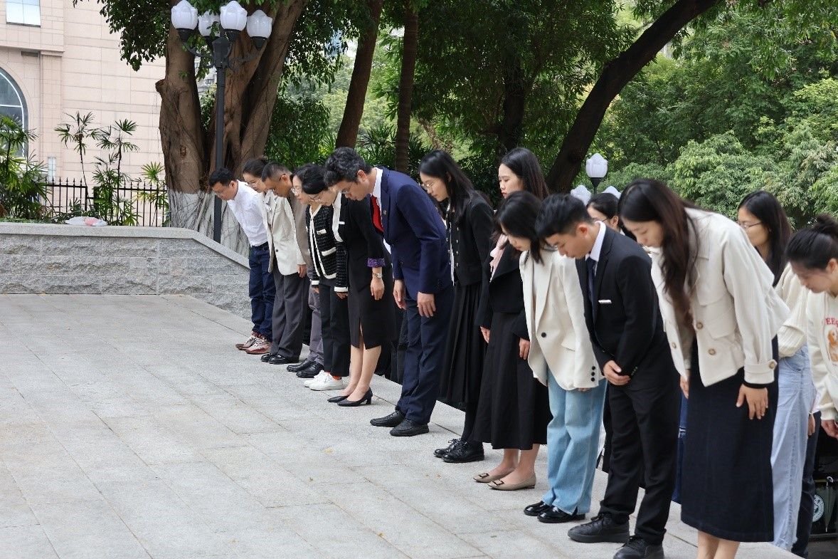 随后,全场向孙中山先生铜像三鞠躬,表达对孙中山先生的崇高敬意和怀念之情。