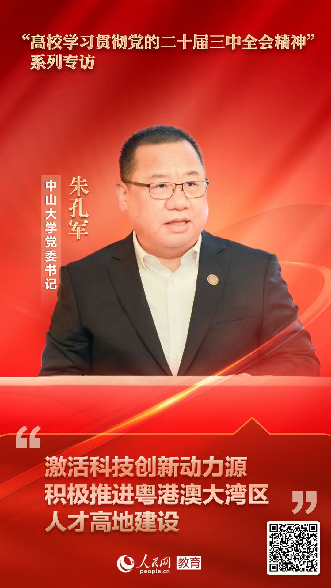 朱孔军:习近平总书记多次强调,培养什么人、怎样培养人、为谁培养人是教育的根本问题,也是建设教育强国的核心课题。立德树人是教育的根本任务,是高校立身之本,立德树人成效是我们检验学校一切工作的根本标准。
