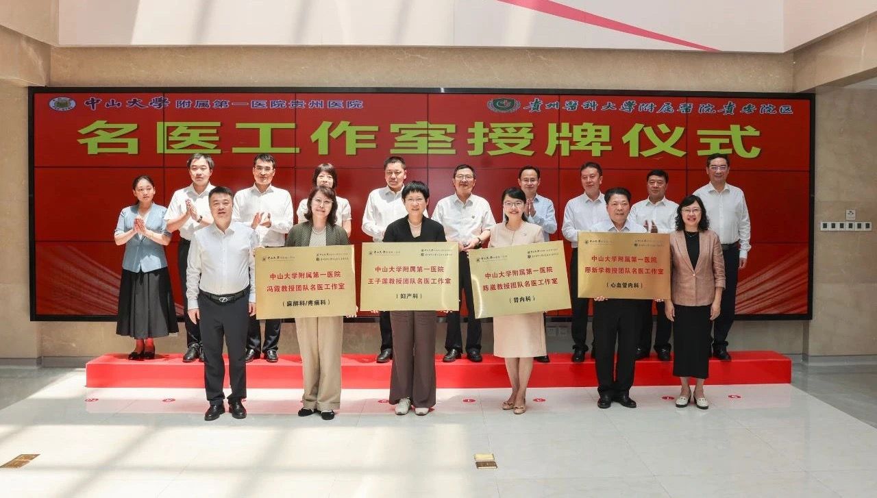 座谈会后,举行了名医工作室授牌仪式,本次共有4个附属一院名医工作室落户中山一院贵州医院(贵医附院贵安院区),包括:妇产科王子莲教授团队名医工作室、肾内科陈崴教授团队名医工作室、心血管内科廖新学教授团队名医工作室、麻醉科/疼痛科冯霞教授团队名医工作室,将以“技术平移、管理平移”核心使命,实现优质医疗资源“带土移植”。高松慰问了派驻医疗队员,详细了解队员们的食宿、诊疗及生活所需。