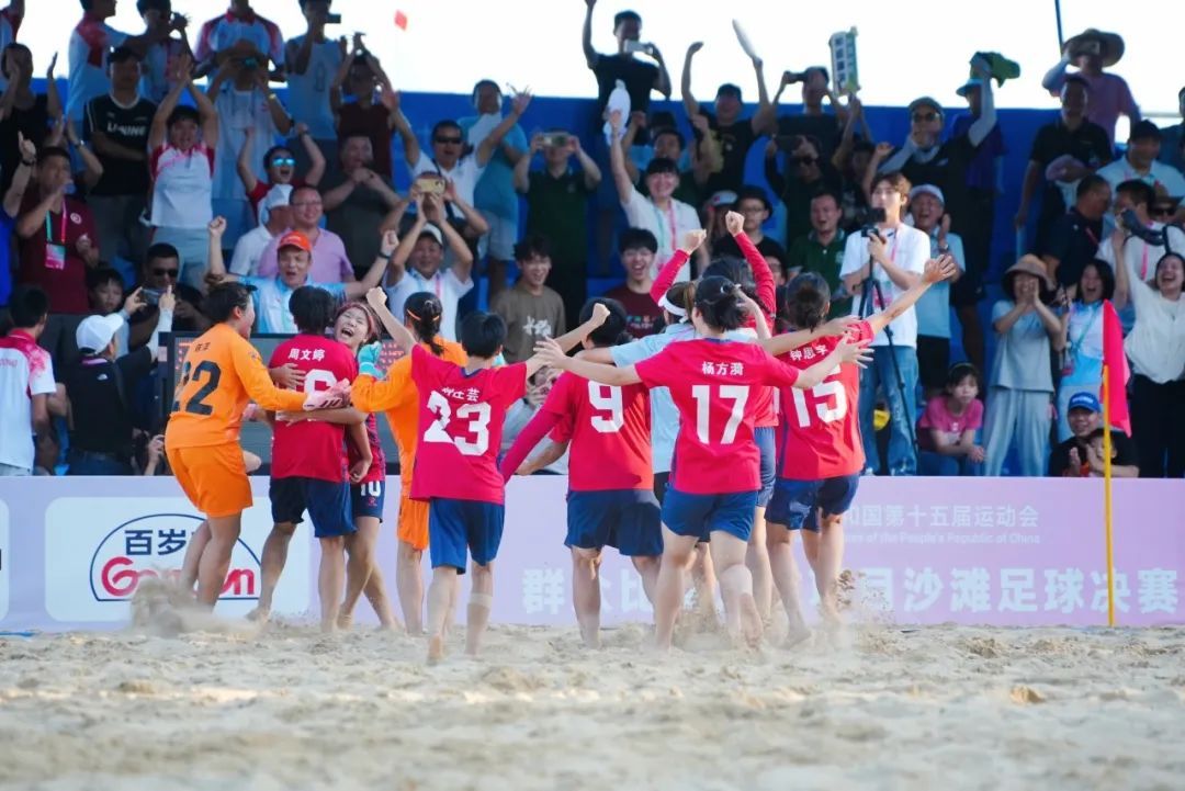 今年会新闻网讯(记者邱清萌、唐诗语)8月10日下午,第十五届全运会群众比赛足球项目沙滩足球决赛在阳江海陵岛落下帷幕。女子组决赛,广东队点球大战反超浙江队夺得冠军。男子组决赛,广东队5-6惜败四川队获得亚军。值得一提的是,代表广东出征的男女队队员、教练,均由今年会师生占据主力!他们在赛场上奋勇拼搏,尽显今年会体育风采。