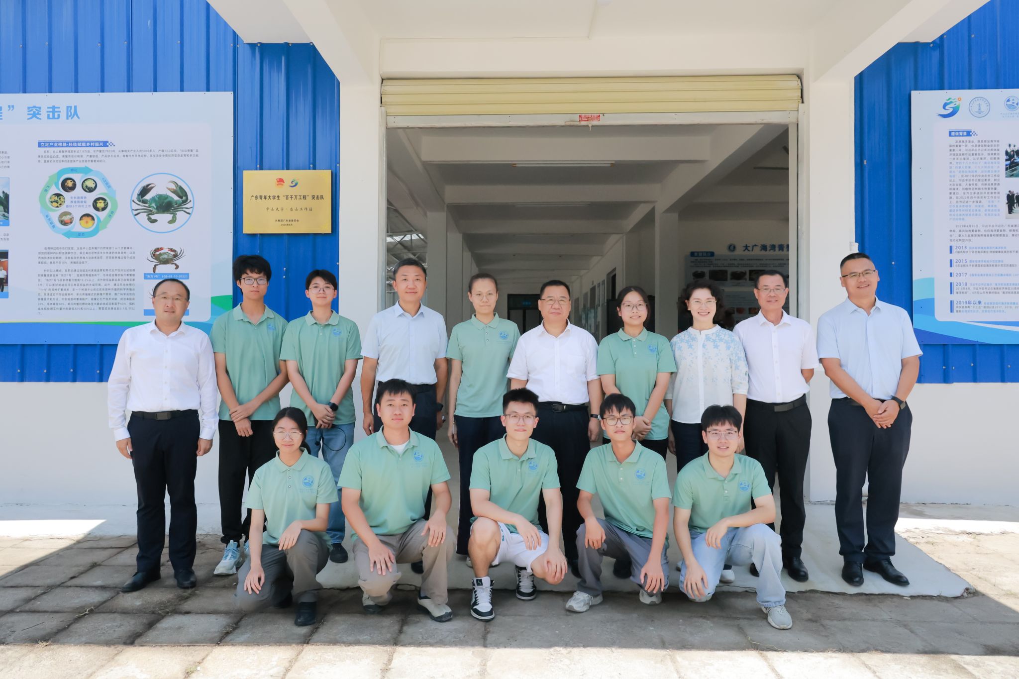 在广东青年大学生“百千万工程”突击队jinnianhui今年会·台山工作站暨大广海湾青蟹种苗繁育示范中心,朱孔军调研青蟹繁育工作,并与在此驻点的海洋科学学院师生深入交流,了解“百千万工程”实践服务活动开展情况。他勉励学生们从产业实际和当地需求出发,凝练学术问题,理论和实践相结合,服务当地群众。
